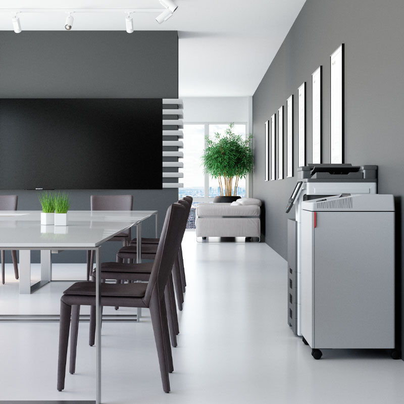IDEAL shredders are equipped with an electronic capacity control (ECC), which monitors sheet capacity levels to prevent jams during shredding. Additionally, deskside units have an automatic reverse and power cutoff feature that activates when the shredder is overfed, effectively preventing jamming.